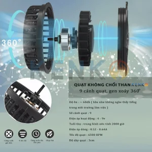 – 2 máy quạt KHÔNG CHỔI THAN sử dụng động cơ Mabuchi Nhật Bản nên rất khỏe êm, ít nhiễu và cực bền bỉ, tuổi thọ hơn hẳn các dòng quạt thông thường đến 2 3 lần. Tốc độ không tải đạt 6000 vòng/ phút, lượng gió lưu thông đạt 7,4m3/giây.